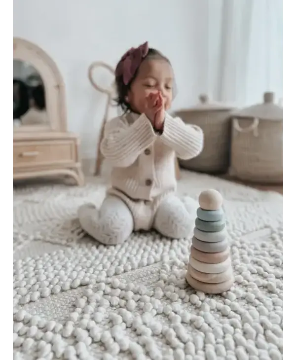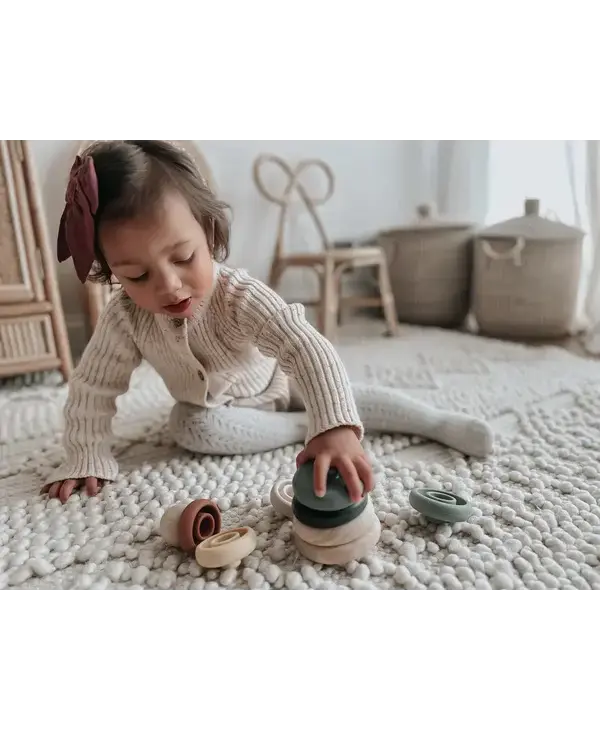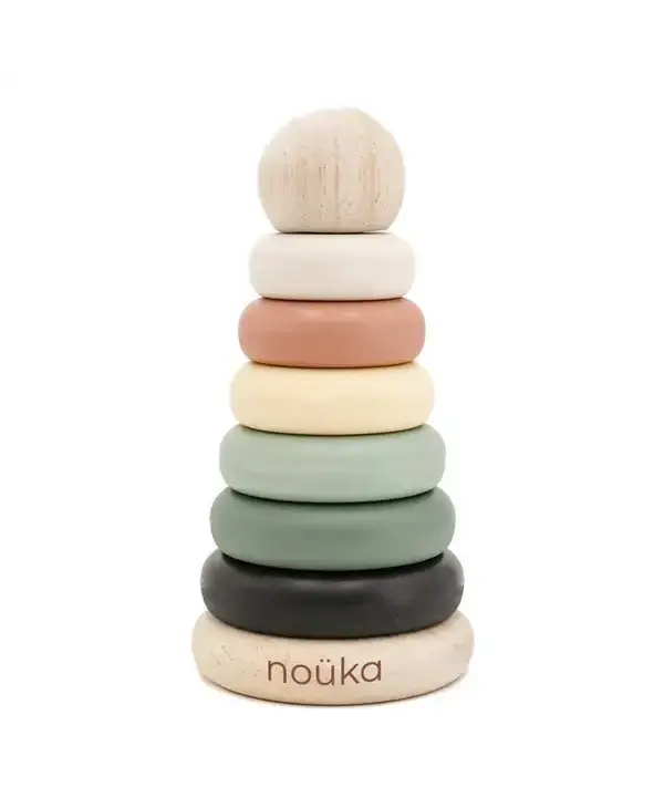 Little ones will love playtime with the noüka Wood and Silicone Stacker. Our silicone stacking tower helps develop color recognition, organization, and fine motor skills. The stacking tower comes with six soft and flexible silicone discs in an array of modern shades for building and counting. A seventh wooden disc and sturdy wood base keeps pieces in place. The lightweight wood ball can be used for playtime and keeps discs organized and contained while not in use. Made from soft and flexible food grade silicone and natural beech wood, this stacking toy is nontoxic and safe for little ones.