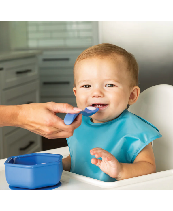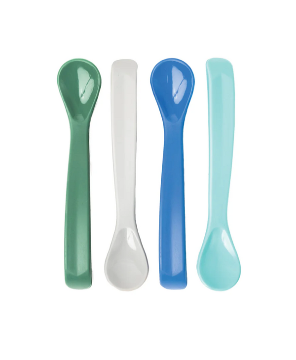 Tiny Twinkle's Silicone Baby Spoons are the perfect feeding tool for parents to feed infants first purees. Made from 100% food grade silicone, they are durable yet flexible and soft on baby's gums. Specifically designed with a long ergonomic handle to allow the spoons to reach to the bottom of jars. Shallow spoon bowls make perfect portions for feeding baby. Spoons are dishwasher and freezer safe. For use with ages 4 - 9 months, not intended for self feeding.