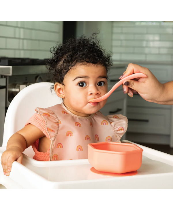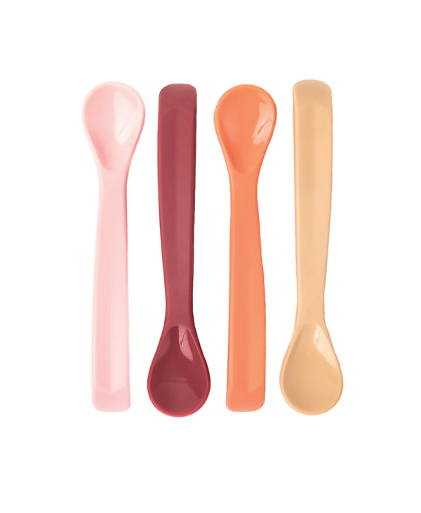 Tiny Twinkle's Silicone Baby Spoons are the perfect feeding tool for parents to feed infants first purees. Made from 100% food grade silicone, they are durable yet flexible and soft on baby's gums. Specifically designed with a long ergonomic handle to allow the spoons to reach to the bottom of jars. Shallow spoon bowls make perfect portions for feeding baby. Spoons are dishwasher and freezer safe. For use with ages 4 - 9 months, not intended for self feeding.