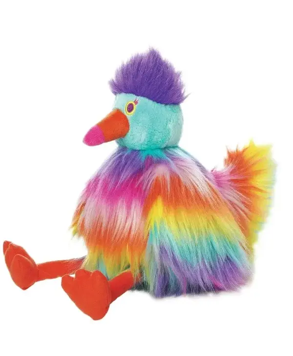 Colorful, quirky and bursting with personality perfectly describe the Silly Birds plush toy collection. These birds of a feather flock together, but also have their own unique style that makes each one special. Prism's vibrant multi-colored plumage is hard to miss and satisfying to squeeze. Plus, the slightly understuffed body and gangling legs just add to this bird's cuddly and whimsical personality.