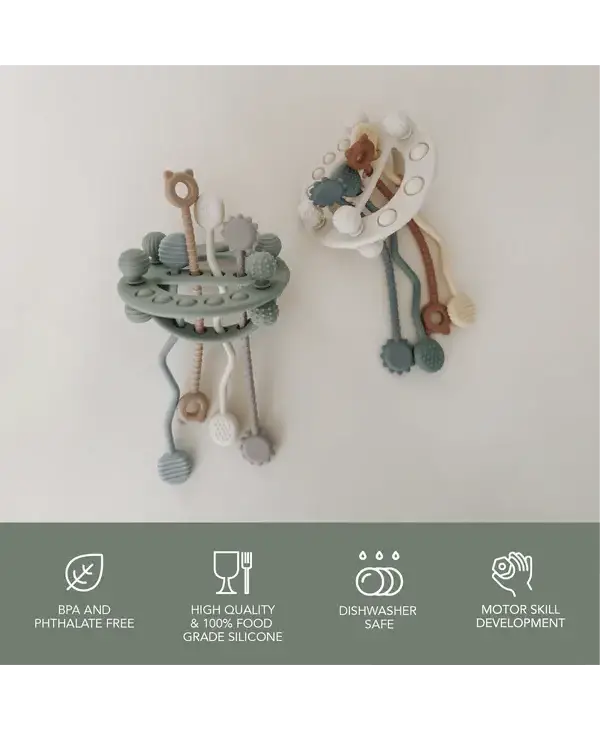 - Pullable cords – Produce various sounds and vibrations, helping to develop fine motor skills