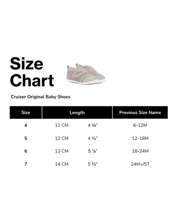Help your baby walk faster and with confidence! The Cruiser is a lightweight children’s shoe scientifically designed to support early walking. With sturdy ankle support and a flexible sole, this shoe will help your little one stand up and improve their balance.