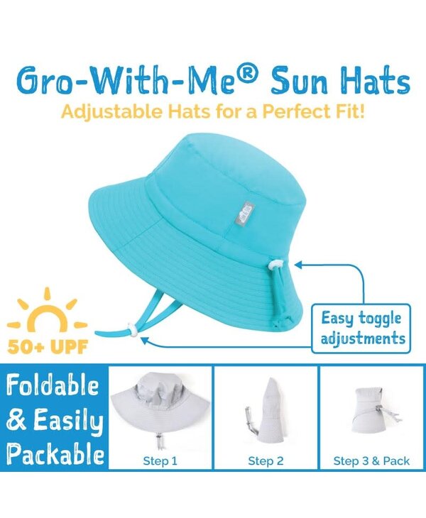 From sunny days to the unexpected rain shower, these hats are ready for anything! Jan & Jul's Aqua-Dry Bucket Hats provide rain-or-shine protection, while staying out of the face with reinforced stitching. Stay comfortable in and out of the water with lightweight quick-dry fabric, a breathable mesh liner, and cotton sweatband. This Gro-With-Me® sun hat is guaranteed to fit your little one with an adjustable head drawstring and adjustable chinstrap.