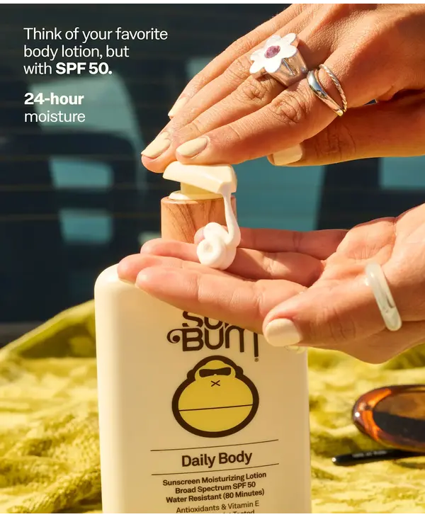 Think of your favorite body lotion, but with SPF benefits. Enriched with Vitamin E and Antioxidants, our Daily SPF 50 Body Lotion feels lightweight, provides 24-hour moisture, and protects against UVA/UVB rays. Plus, it kinda makes us wanna wear it on the daily.
