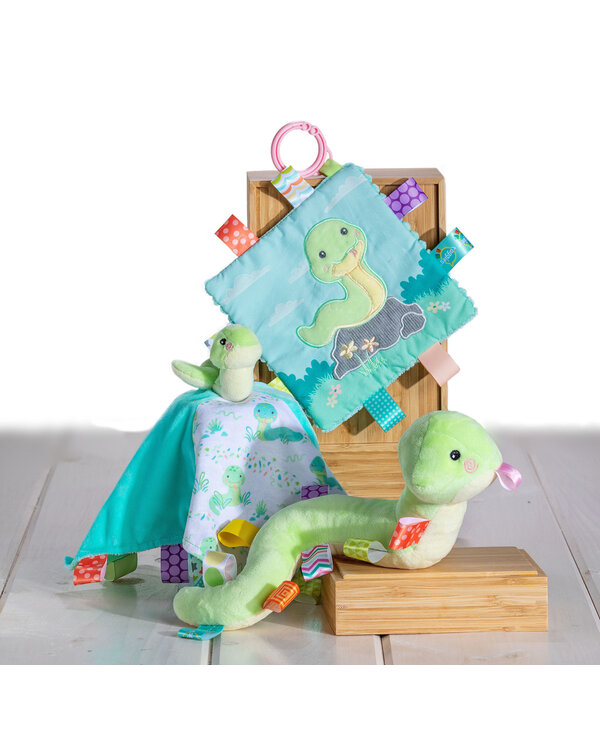 Taggies was born over a decade ago when a mom noticed her child’s fascination with satin tags. This idea blossomed into a world of treasured products. Little ones are mesmerized by rubbing these soft, satin loops. Exploring Taggies textured tags can provide tactile stimulation that babies crave for development and have an amazing calming effect on little ones. Discover the secret too!