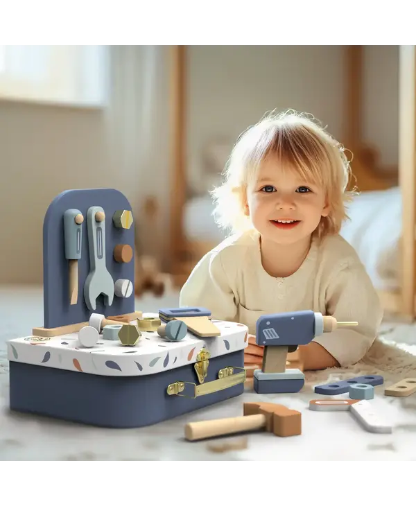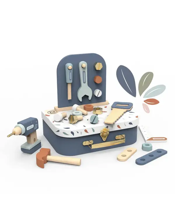 Get ready to build, fix, and imagine with the Tool Suitcase, a hands-on wooden toy set designed for young builders.