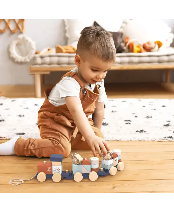 • Your little one will have hours of fun, stacking elements on the train and building houses with colourful blocks.