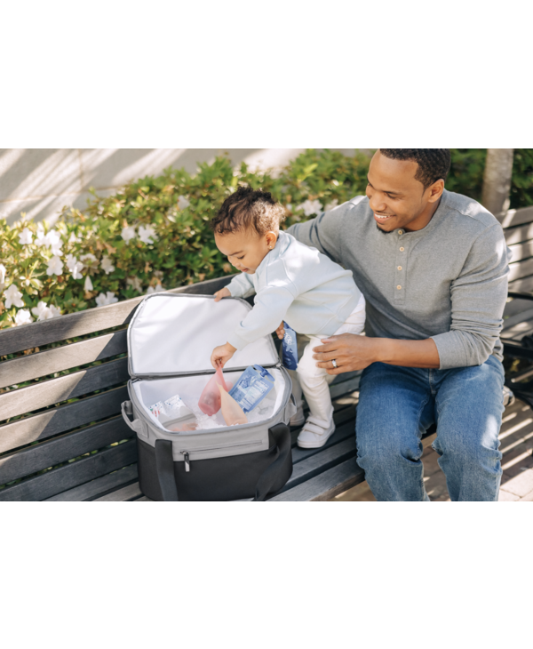 Insulated, leakproof, and designed to seamlessly fit inside your stroller basket, the portable Bevvy stroller cooler is ready for your adventures ahead.