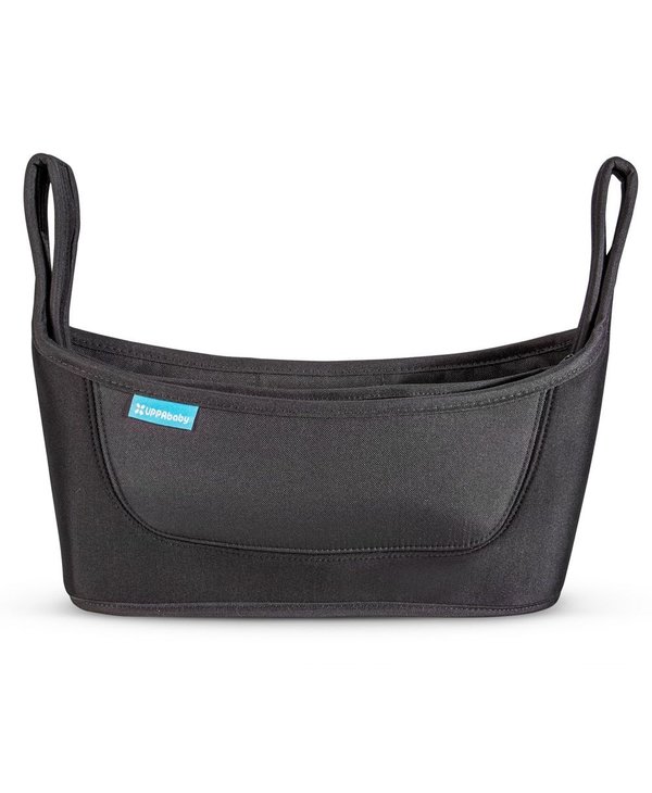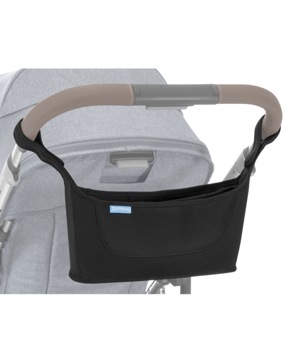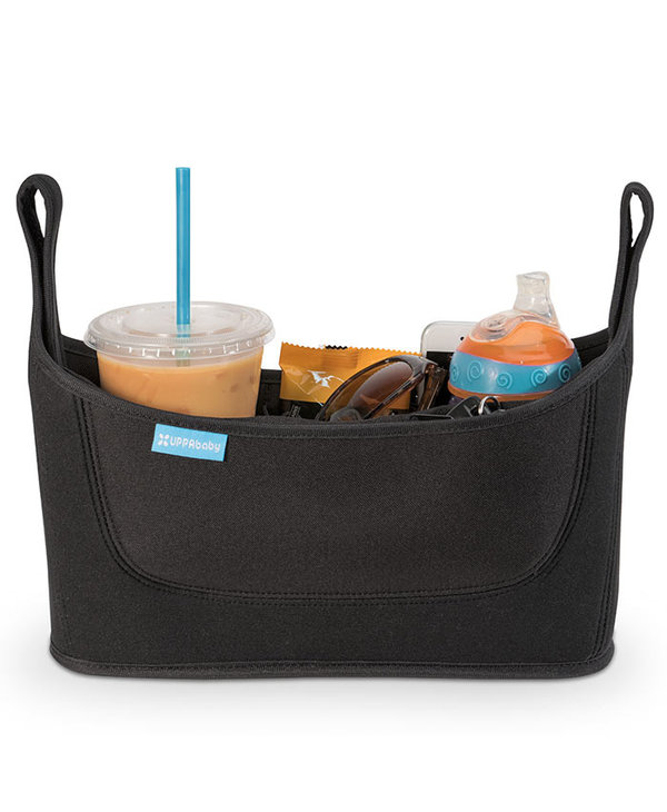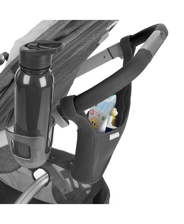 This deluxe parent console has multiple, easy-access compartments for various beverages or snacks, while a large zipper pocket stores personal items.