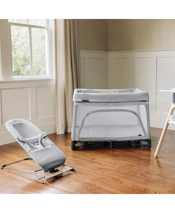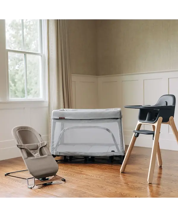 A cozy place to play or lay, the Mira was designed to soothe and comfort baby while keeping them close. Following their natural movement, the 2-in-1 bouncer and seat gently rocks to their rhythm from newborn to toddler.