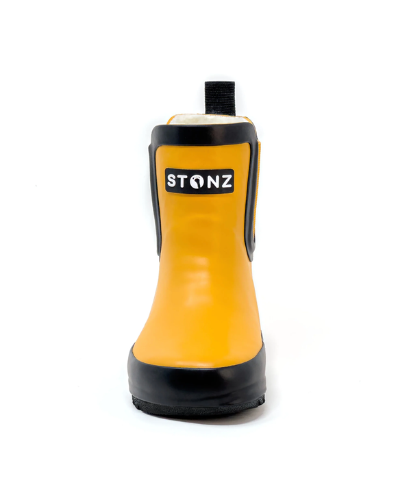 The Stonz Wear Urban Boot is a super-flexible rubber boot for toddlers & kids with grippy soles and fuzzy lining to make it easy to climb, run and jump puddles and slushy snow. Keep their toes warm and dry in any outdoor adventure from city streets to forests. A staple rain boot for every fall farm visits and those wet winter days. From Daycare to everywhere!