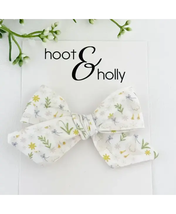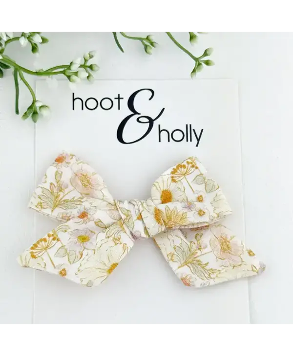 Beautifully crafted hand tied hair bow, the perfect size for babies, toddler and girls of all ages. Made with high quality cotton fabric. Attached to: Nylon Headband - soft nude nylon that fits newborn to child. Premium no run nylon headbands that are lightweight and gentle.