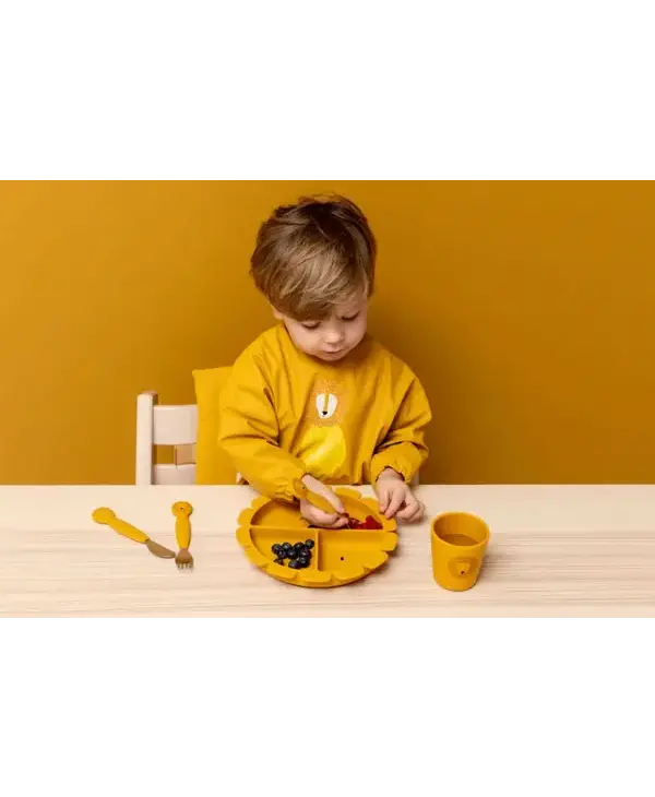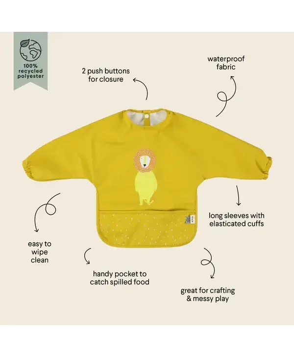 Fun and laughs at the table with your favorite animal friend! This playful set of 2 bibs keeps your little one's clothes clean while enjoying a nice meal, drink, or snack. The handy pocket makes sure all spilled food is neatly caught, making much less of a mess. It comes with practical closing strings that make fitting more adjustable while your child is growing. More good news: the fabric is waterproof and made from 100% recycled polyester and is waterproof! It is easy to wipe clean and saves you a lot of washing or cleaning time.