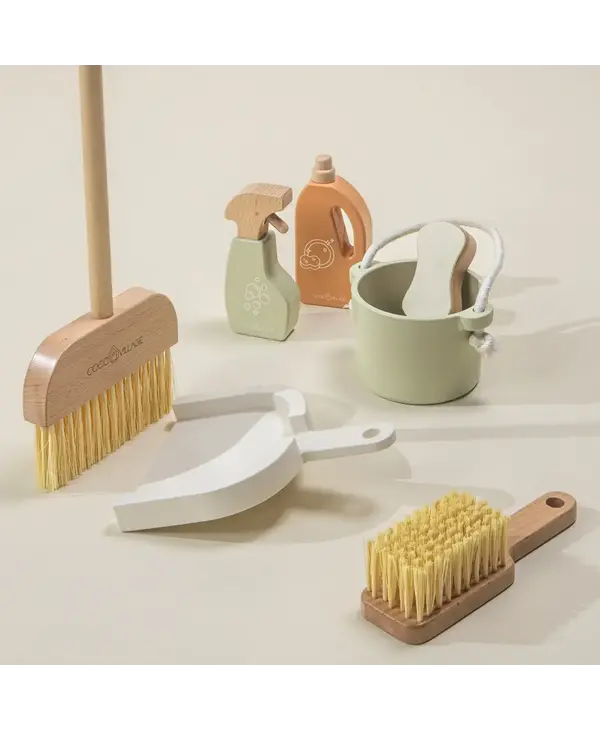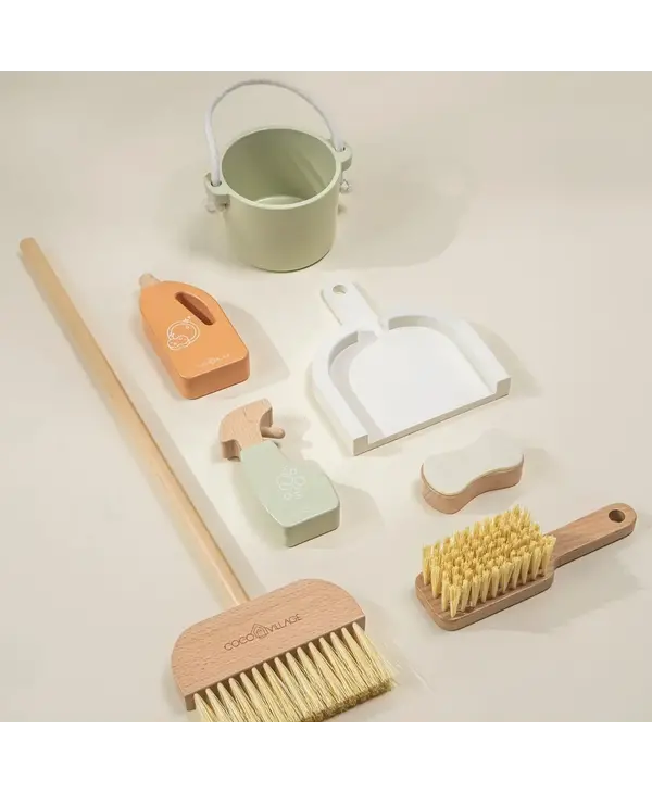 Encourage your child's imagination and help them develop essential life skills with this Wooden Cleaning Playset. Crafted from high-quality, child-safe wood, this set features realistic cleaning tools designed for little hands, allowing your child to mimic everyday cleaning tasks in a fun and engaging way. Perfect for children who love to help around the house, this playset promotes independence, responsibility, and coordination, while offering endless opportunities for imaginative play. Whether tidying up their playroom or pretending to clean alongside you, your child will enjoy hours of hands-on fun.