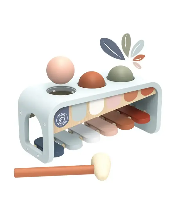 • Included three balls which your little one can hammer down into the slots and slide on the wooden xylophone below.